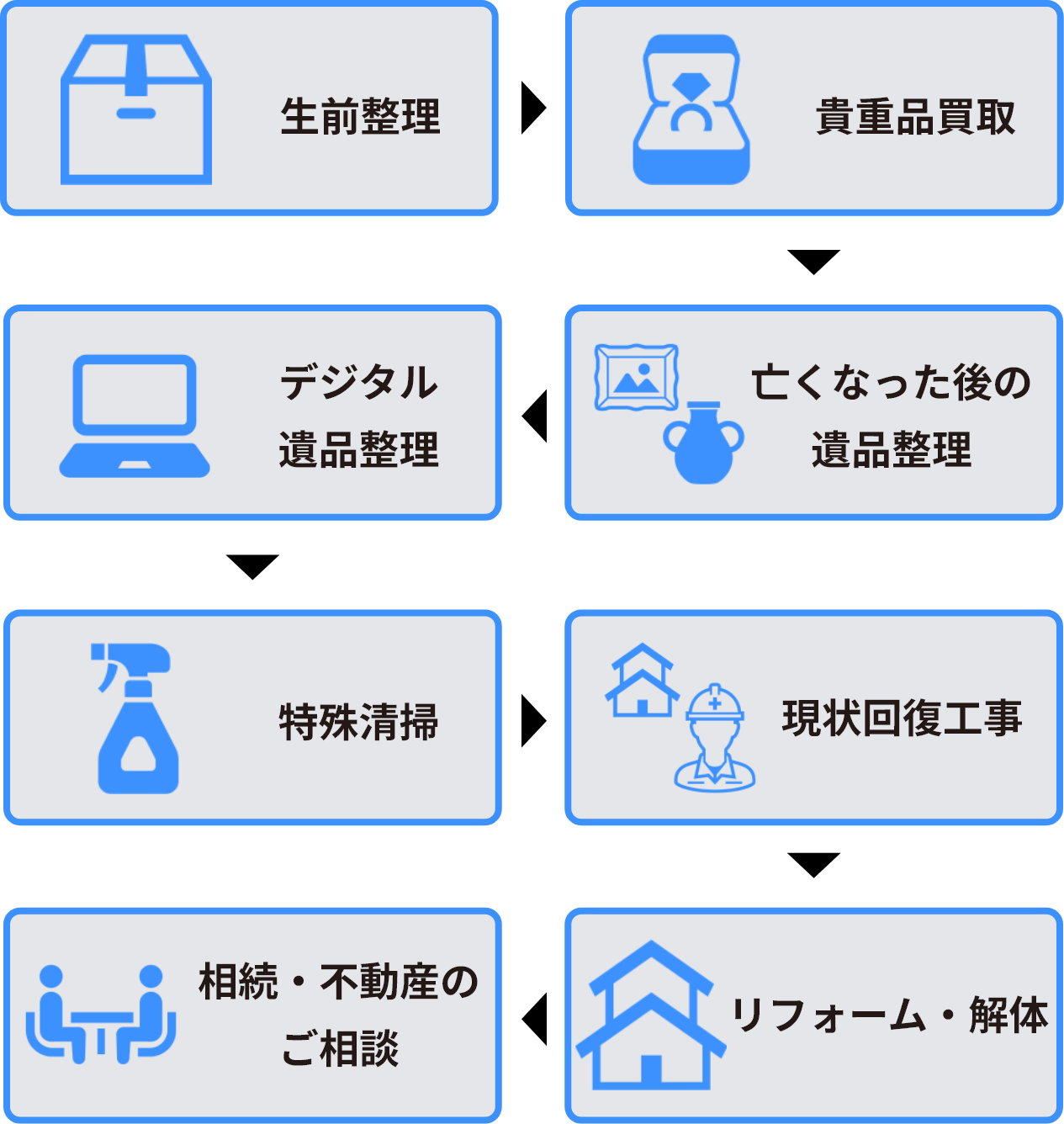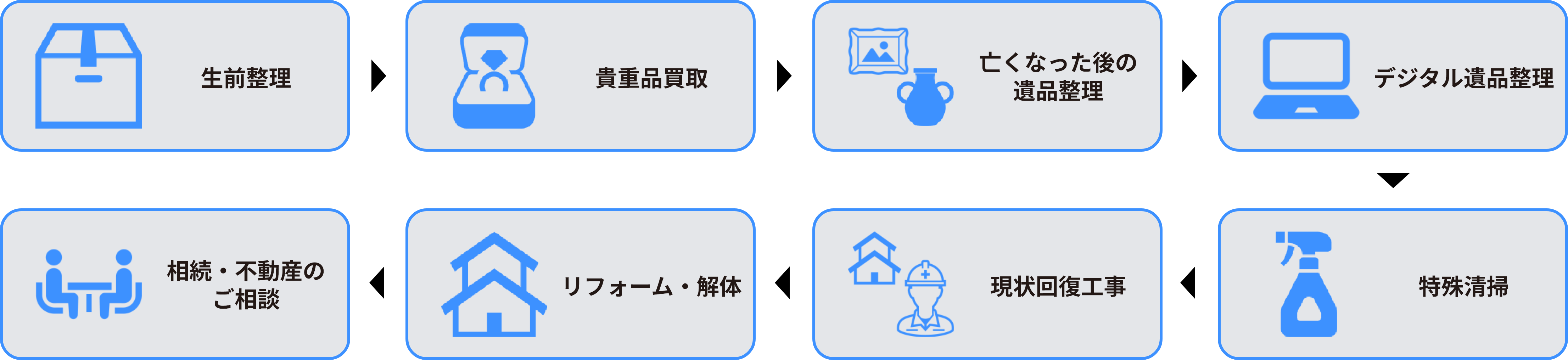 ※基本プランの中には、遺品の仕分け・分別・梱包・不用品の処理・搬出・積込・養生作業・簡易清掃が含まれています。